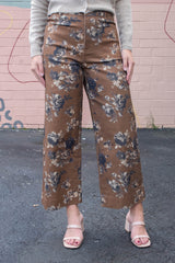 Aubrey Floral Mid Rise Ankle Pants, Caramel