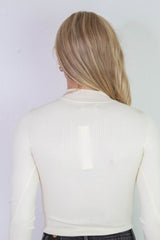 Elevate your style with the Bella High Neck Ribbed Bodysuit in Cream. This playful piece features a cozy high mock neck and a flattering ribbed knit texture that hugs your curves. Snap button closures make dressing a breeze, while long sleeves add a touch of elegance and warmth. Perfect for layering or wearing solo, it’s your new go-to for effortless chic!