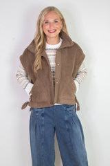 Addison Button Front Faux Fur Vest, Brown