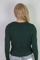 Elsie Round Neck Smocked Top, Dark Green