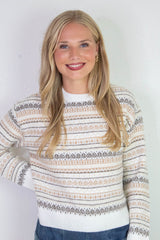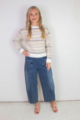 Hera Crew Neck Striped Sweater, Natural | RD Style