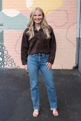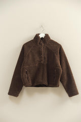Stay cozy and cool in the Aria Sherpa Button Neck Jacket. This brown jacket features soft sherpa fabric, long sleeves, and a mock neck for that extra snug feel. Snap button closures add a fun twist while side zipper pockets keep your essentials safe and within reach. Perfect for chilly days when you want to look effortlessly stylish!