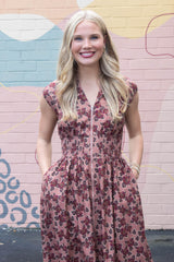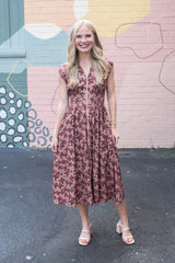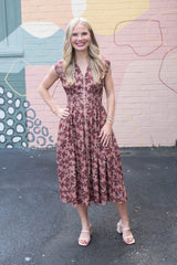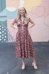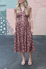 Embrace effortless charm with the Molly Printed Front Zip Dress in Dusty Rose/Wine. Featuring playful floral prints and trendy drop shoulders, its smocked waist offers a flattering fit while the front zipper adds a fun twist. The midi length and side pockets keep it practical yet stylish, and the V-neck adds a flirty touch. Perfect for sunny strolls or casual gatherings, this dress brings a fresh, lively vibe to your wardrobe!