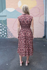 Molly Printed Front Zip Dress, Dusty Rose/Wine