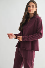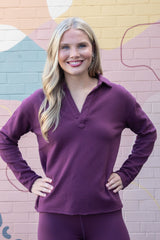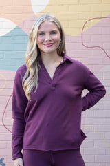 Add a splash of fun to your casual wardrobe with the Phoebe Collared Henley Tee in Dark Plum. Featuring a stylish collared neckline and comfy Henley style, this long-sleeve favorite keeps things interesting with raw, rolled edges for a relaxed, effortlessly cool vibe. Perfect for layering or wearing solo, it’s your new go-to for laid-back days with a twist!