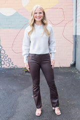 The Sumire Crewneck Pullover Sweater in Natural Mix adds a fun twist to your cozy wardrobe with its long balloon sleeves and playful seam details. The cropped cut and side slits give it a breezy vibe, perfect for layering or rocking solo. It’s a comfy, stylish pick that’s ready to brighten up any day!
