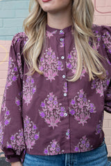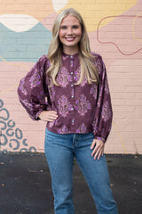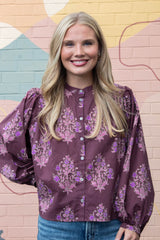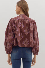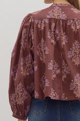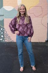 Add a splash of charm to your wardrobe with the Wren Block Floral Blouse in rich burgundy. Featuring bold block floral prints and playful long puff sleeves, this blouse effortlessly balances vintage flair and modern style. The neat band collar and button front add a touch of sophistication, making it perfect for day-to-night adventures. Whether paired with jeans or a skirt, this blouse invites you to embrace fun, flirty fashion with a confident twist!