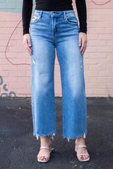 Step out in style with the Charlotte High Rise Lightly Distressed Jeans! Featuring a flattering high-rise fit, playful cropped length, and wide legs that flow with every move, these jeans bring effortless cool to your wardrobe. The gentle distressing adds just the right touch of edge without going overboard. Perfect for mixing and matching, they’re your new go-to for days when comfort meets standout style!