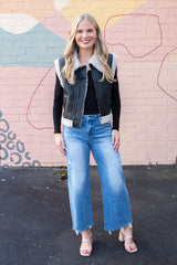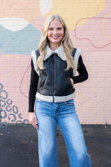 Claire Faux Leather Sherpa Lined Vest, Black