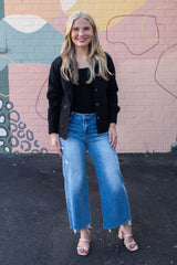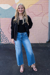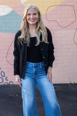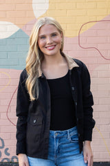 This black work jacket brings a playful twist to classic utility with its cozy corduroy collar and durable cotton twill fabric. Featuring long sleeves and a button-down front, it’s designed for comfort and ease on the move. Handy side pockets add practical charm, making this jacket your go-to for both work and casual adventures!