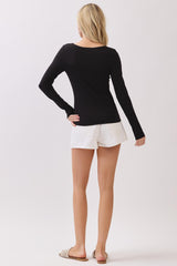 Add a little extra flair to your wardrobe with the Della Layered Round Neck Top in Black. Featuring cozy long sleeves and a playful double-layered design, this top keeps things interesting while staying comfortably casual. Perfect for layering or wearing on its own, it’s your go-to for effortless style with a twist.