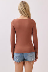 Add a little extra flair to your wardrobe with the Della Layered Round Neck Top in Nutshell. Featuring cozy long sleeves and a playful double-layered design, this top keeps things interesting while staying comfortably casual. Perfect for layering or wearing on its own, it’s your go-to for effortless style with a twist.