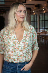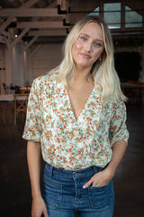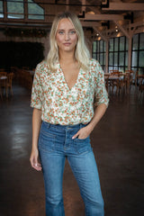 Slow Travels Surplice Bodysuit, Cream Multi | Sadie & Sage