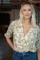 Unleash your playful side with the Slow Travels Surplice Bodysuit! This cream multi bodysuit features a surplice design, half sleeves, and a snap button closure, perfect for any adventure. The bold floral print adds a touch of whimsy to your wardrobe!
