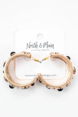 Add a touch of sparkle to your look with these playful hoop earrings. Featuring hammered gold hardware that catches the light in all the right ways, they're adorned with crystal rhinestones in black, grey, and clear for a chic, eye-catching finish. Perfect for elevating any outfit with a little dazzling fun!