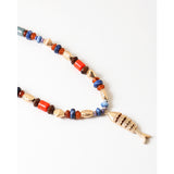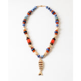 Beaded Necklace W/ Fish Pendant, Navy Coral Gold