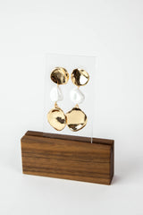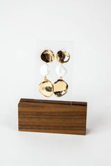 Add some flair to your jewelry collection with our Organic Pearl & Disk Dangle Earrings. The unique combo of pearls and disks creates a playful and eye-catching design. With their dangle style, these earrings are perfect for adding a touch of whimsy to any outfit!