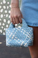 Get ready for compliments with the Serena Braided Clutch! Magnetic button closure keeps your essentials secure. Includes a convenient coin purse and detachable gold chained strap. The unique braided denim and leather design adds a touch of cool to any outfit!