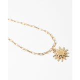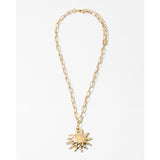 Catch some rays around your neck with this radiant sun pendant necklace. Crafted in gleaming gold, this cheerful accessory brings warmth and brightness to any outfit. Whether you're channeling celestial vibes or just need a daily dose of sunshine, this playful piece delivers instant charm. Layer it solo for understated elegance or stack it with other favorites for maximum impact. A timeless treasure that keeps the good energy flowing.