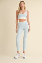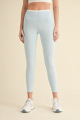 Upgrade your activewear game with our Sloane Contrast Waistband Leggings. These vibrant baby blue leggings feature a white contrast waistband adding some style to your workout ensemble. Perfect for standing out at the gym or running errands, these leggings provide both style and comfort!