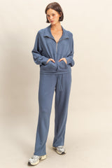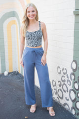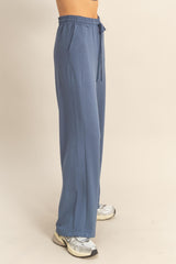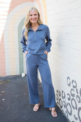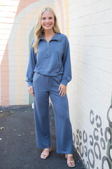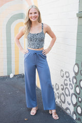 Slip into comfort with the Sloane Wide Leg Knit Pants in Dusty Navy. Featuring a relaxed wide-leg fit and an elastic drawstring waist, these pants offer effortless style and adjustable comfort. Seam detailing adds a subtle touch of flair, making them perfect for lounging or casual outings with a playful twist!