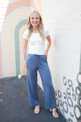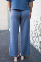Sloane Wide Leg Knit Pants, Dusty Navy