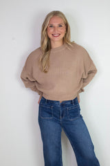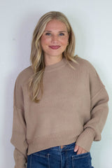 Camila Round Neck Cropped Sweater, Dark Taupe