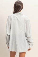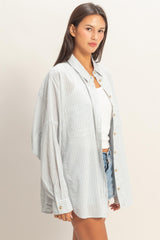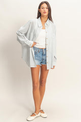 Meet your new go-to layering piece! This Charlotte Button Down Shirt brings effortless style in a soothing dusty blue with classic stripes that play well with everything in your closet. Long sleeves keep things cozy, while the button-down front makes getting dressed feel like a breeze. Whether you're buttoning it up solo or throwing it over a tee, this versatile shirt is ready for whatever the day throws your way.