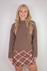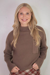 Cleo Mock Neck Chest Pocket Sweater, Mocha