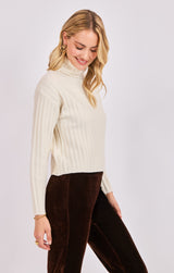Cosette Turtleneck Rib Sweater, Ivory | Sadie & Sage