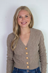 Ellie Gold Button Cable Knit Cardigan, Taupe