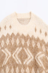 Elevate your everyday style with our Jaquard Knit Sweater in a timeless beige. This cozy layer features an intricate jacquard pattern that adds visual interest without sacrificing comfort. The classic round neckline pairs effortlessly with everything in your wardrobe—dress it up with tailored trousers or keep it casual with your favorite jeans. Perfect for layering through the seasons, this sweater brings texture and warmth to any outfit. A wardrobe essential that never goes out of style.