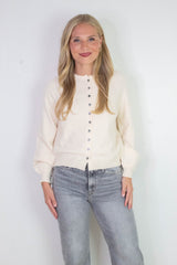 Juliette Rolled Edge Balloon Sleeve Cardigan, Cream
