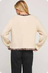 Meet your new go-to layer! This knit cardigan sweater brings just the right amount of sass with its bold leopard print trim. Button down the front for easy styling, slip your hands into the convenient front pockets, and let those long sleeves keep you cozy. Whether you're running errands or grabbing coffee with friends, this jacket adds a fun, fashion-forward vibe to any outfit. Comfort meets personality in one irresistible piece.