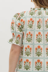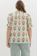 Bloom with confidence in our Liv Floral Top in orange! This charming piece features a playful ruffle finish at the neck and sleeves, with adorable short puff sleeves adding a touch of whimsy. The tie neck detail lets you customize your look – perfect for adding a pop of fun to your everyday wardrobe!