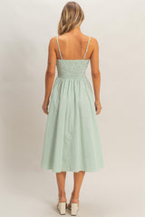 Stripes meet sophistication in this charming Maya midi dress. The delicate spaghetti straps offer an effortless, breezy vibe, while the smocked back detail adds a playful twist that flatters your silhouette. Perfect for everything from casual brunches to garden parties, this green-striped stunner transitions seamlessly from day to night. Slip it on and let the good times roll.