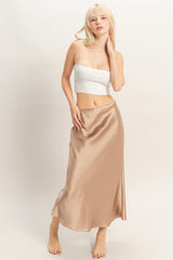 Slip into effortless elegance with our Satin Midi Skirt—the perfect piece for turning heads at brunch, date night, or anywhere you want to feel fabulous. Crafted from luxurious satin that drapes beautifully, this midi skirt strikes the ideal balance between sophisticated and fun. Whether you're pairing it with a crisp white tee for casual vibes or dressing it up with heels and a silky blouse, this versatile wardrobe essential works overtime. The smooth, lustrous finish catches the light just right, making you shine without trying too hard.