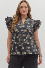 Ember Flutter Sleeve Printed Top, Dark Navy | Plus Size