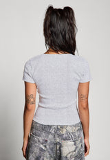 Georgia Faux Button Pointelle Top, Light Heather Grey