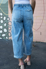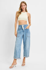 Heidi Cuffed Cargo Barrel Jeans, Light