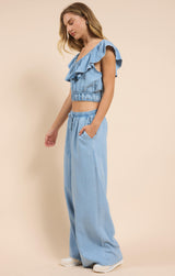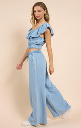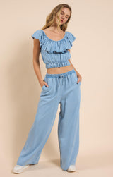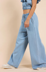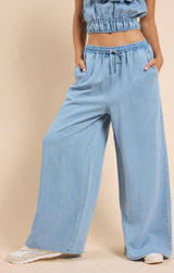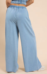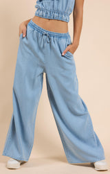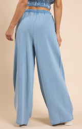 It's Pouring Elastic Drawstring Pants, Light Chambray | Sadie & Sage