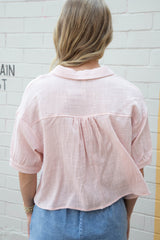 Janelle Cotton Gauze Crop Shirt, Light Pink