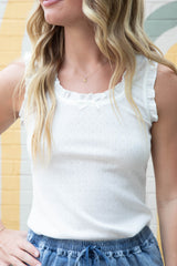 Jazmin Ruffle Trim Scoop Neck Tank, White