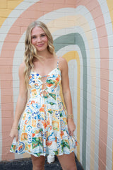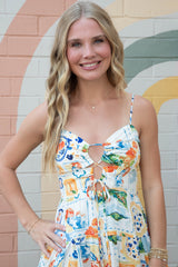 Journi Printed Lace Up Front Dress, Multi
