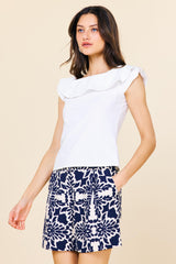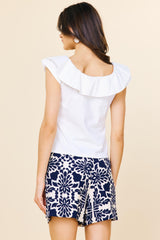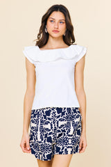 Flirty and fabulous, this white Kara top features a fluttery off-the-shoulder design that's perfect for sunny days and warm nights. The playful ruffled sleeves add just the right amount of movement while you dance through your day. Pair with your favorite shorts or skirt for an instantly cute look that's ready for whatever adventure comes your way!