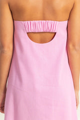 Slip into summer-ready style with this playful pink Karsyn dress! The sand-washed fabric feels dreamy against your skin, while the strapless design shows off sun-kissed shoulders. A flirty cutout back adds unexpected flair, and the convenient side pockets hold your little treasures. This mini-length stunner is perfect for everything from beach days to rooftop parties!