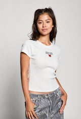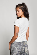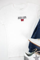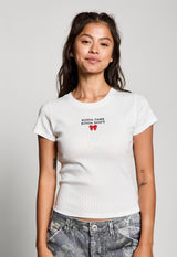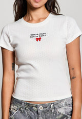 Kinda Care Kinda Don't Pointelle Baby Tee, Off White
