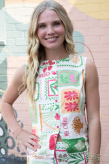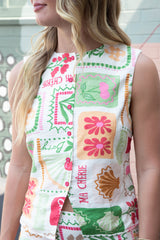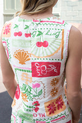 Introducing our Kinley Button Down Top! With a playful printed design and a comfortable round neck, this top is sure to add some fun to your wardrobe. The button down feature and sleeveless design make it perfect for warm weather, while the slit hem adds a touch of uniqueness!