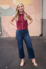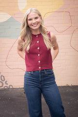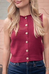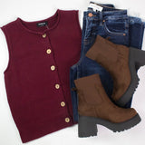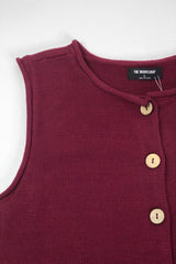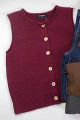 Unleash your inner fashionista with the Lina Raw Edge Cardigan Vest! This warm burgundy vest features raw edges and a button down design for a playful twist on a classic style. The sleeveless and round neck design adds a touch of modern charm. Upgrade your wardrobe with this unique and chic piece!