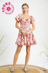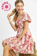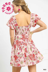 Twirl into spring with our Luisa Floral Mini Dress in vibrant red! This flirty number features charming puff sleeves, a flattering square neckline, and a playful tiered design. The smocked back and elastic waist ensure a comfy fit that hugs in all the right places. Perfect for sunny days when you want to look cute without trying too hard!